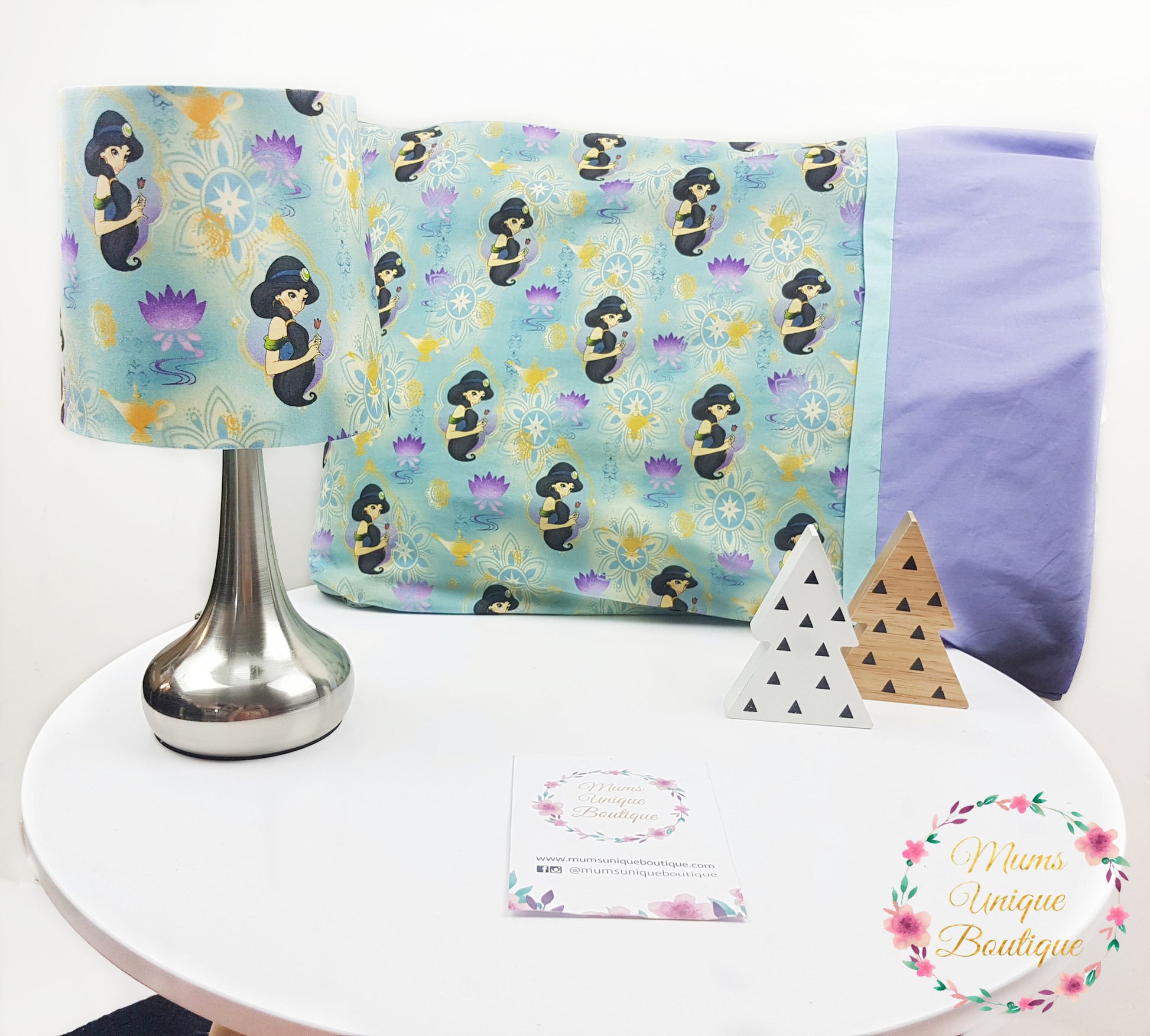 Each pillow case and lamp is unique and made with 100% love. Our pillow case's feature their favourite design on the front and back and matching plain fabric on the end to bring it all together.