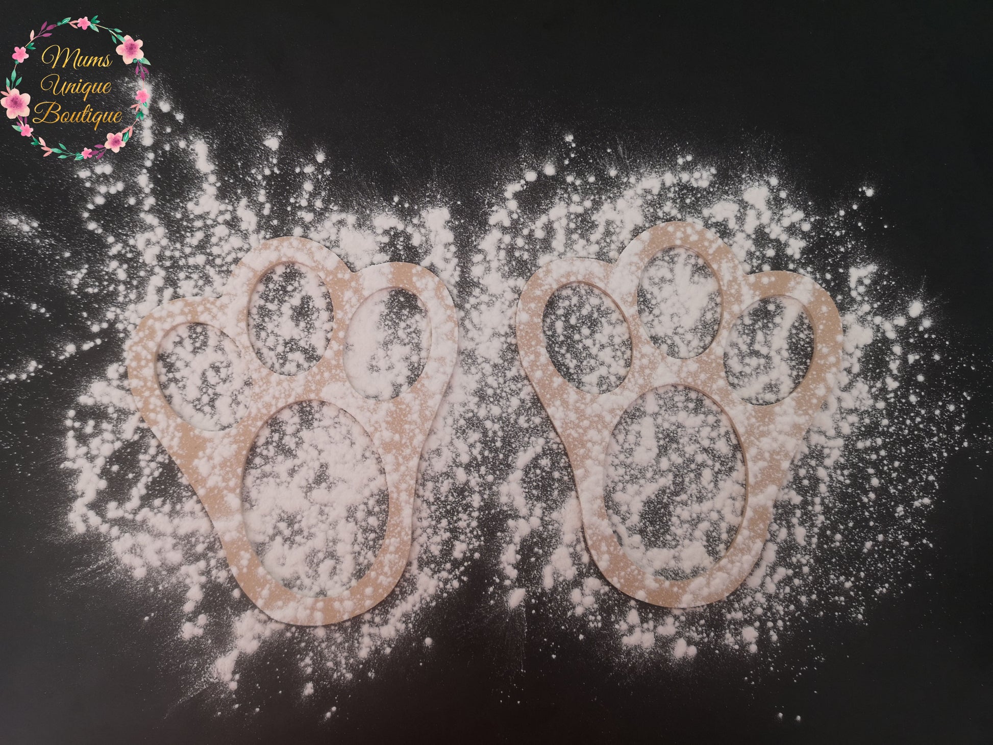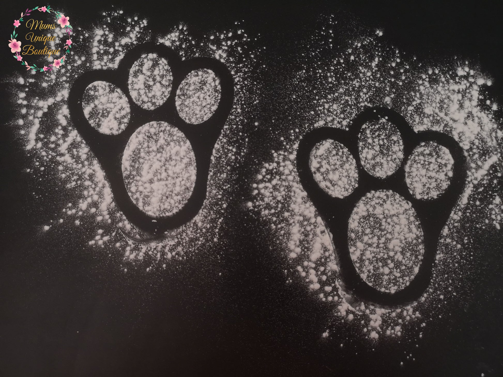 It's as simple as placing the foot prints down and sprinkling Powder or Flour over them. Once each footprint is removed it looks just like The Easter Bunny himself has been!