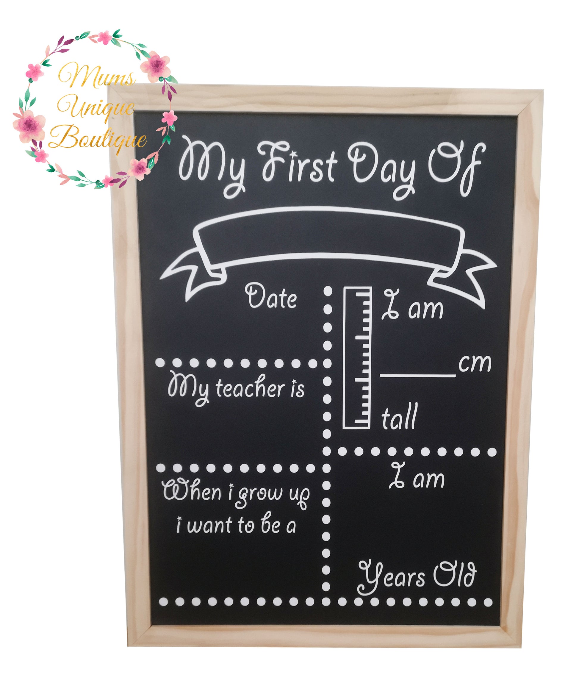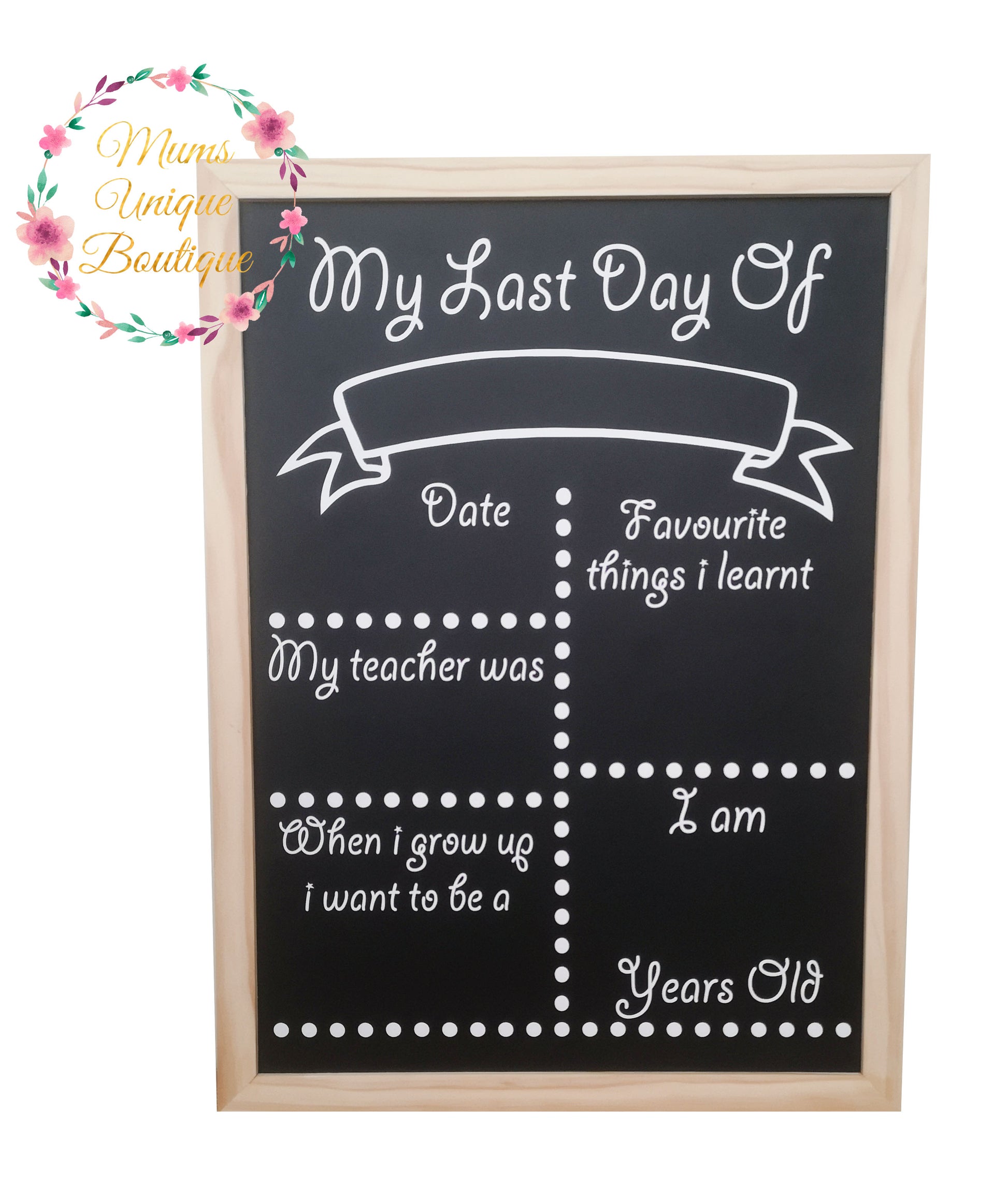Each chalk board can be left as is and used for multiple children/years or personalised with your childs name with the additional option to have a custom design made.