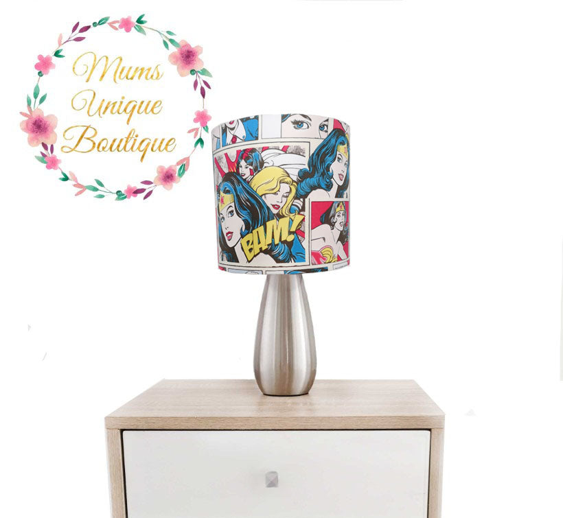 Add light and colour to any room with a custom lamp made in a Wonder Woman design.